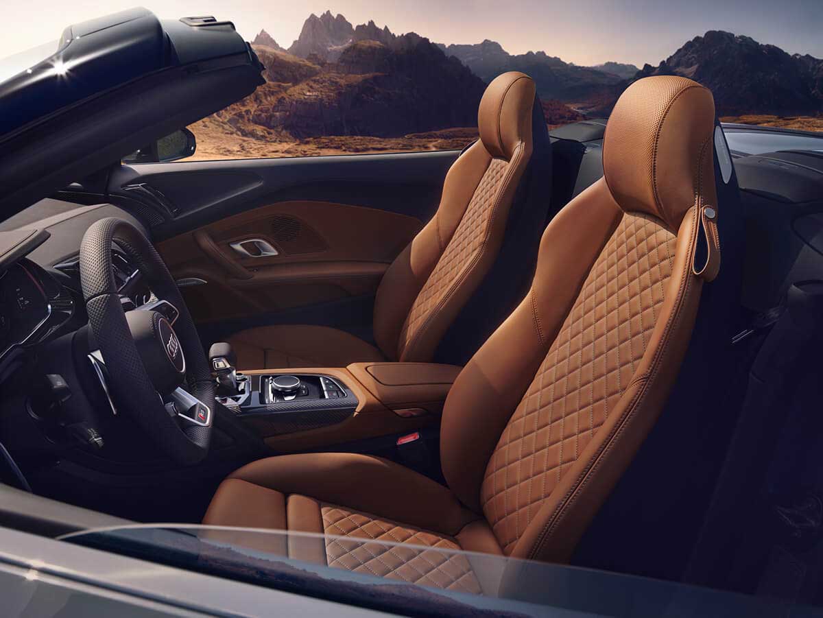 Limited to only 50 units, the 2020 R8 Decennium edition features a Mythos black exterior, matte bronze 20-inch milled-cut wheels and matte bronze intake manifold, along with a gloss black front spoiler, side sills and rear diffuser. Coupled with an interior finished entirely in black, inlays in gloss carbon fiber and quilted rhombus stitching in a copper tone, the R8 V10 Decennium edition pays tribute to its V10 heritage.