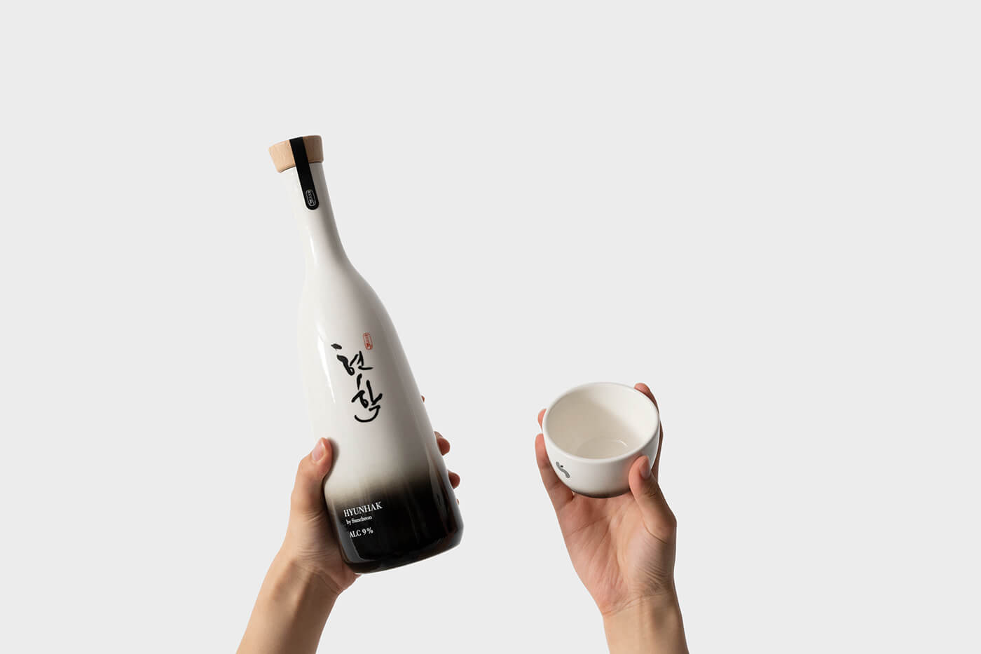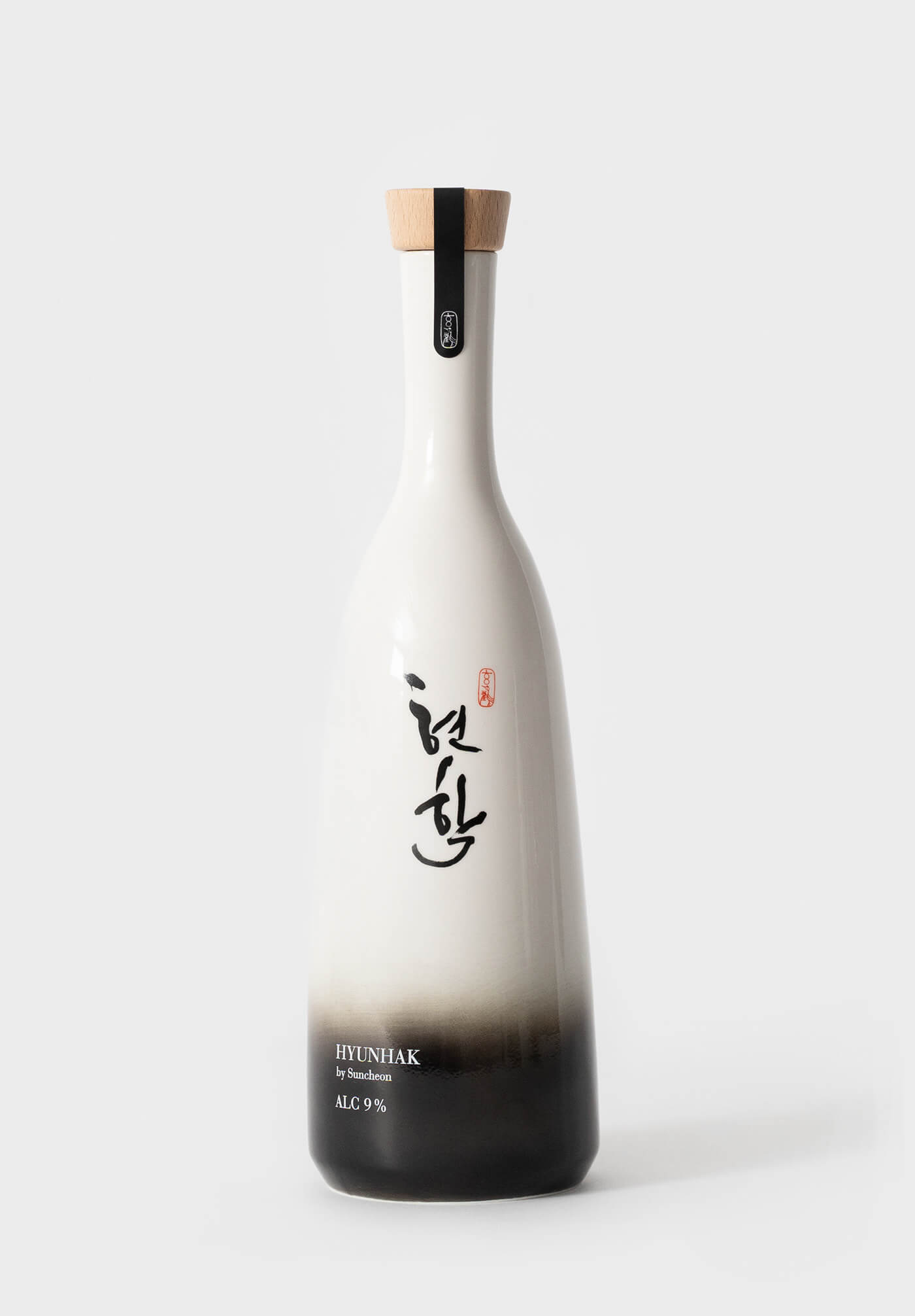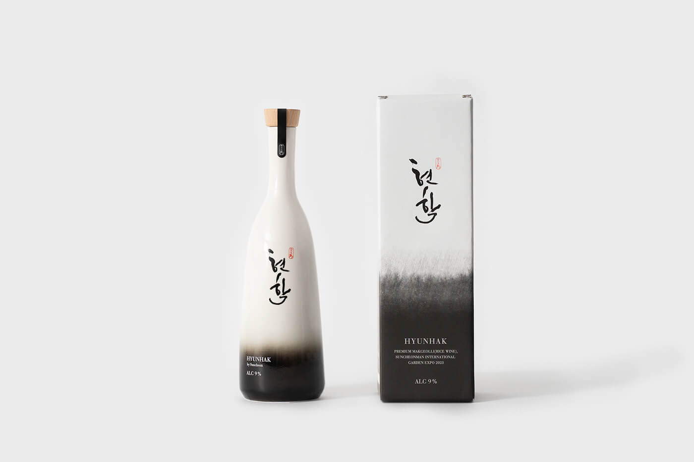 'HYUNHAK' is a Commemorative wine to the 2023 Suncheon Bay International Garden Fair with the concept of a black crane, the symbol of Suncheon City. It is premium makgeolli designed by d'ORIGIN. The curved line of the black crane and the shape of the black crane on the hill of Suncheon Bay are the motifs of the shape
